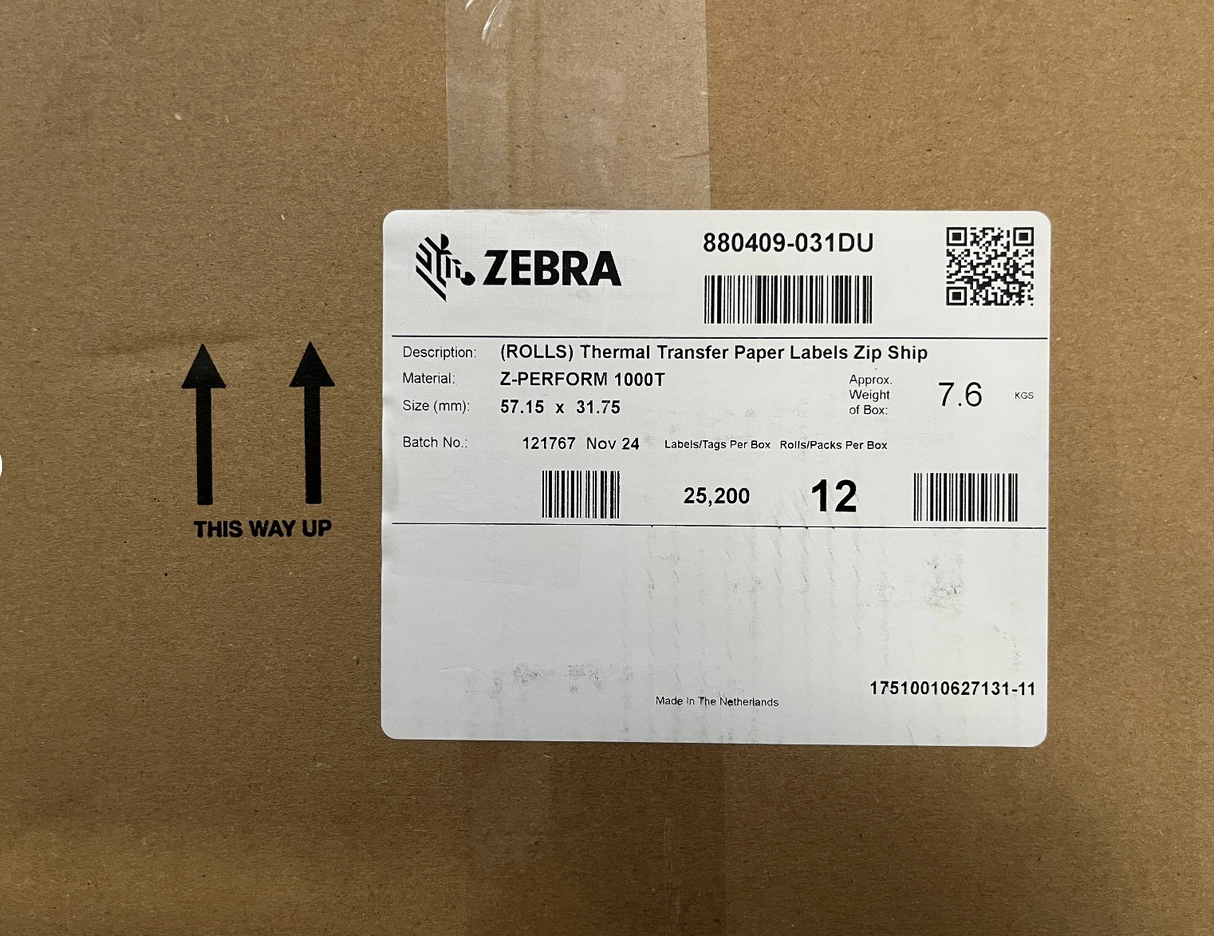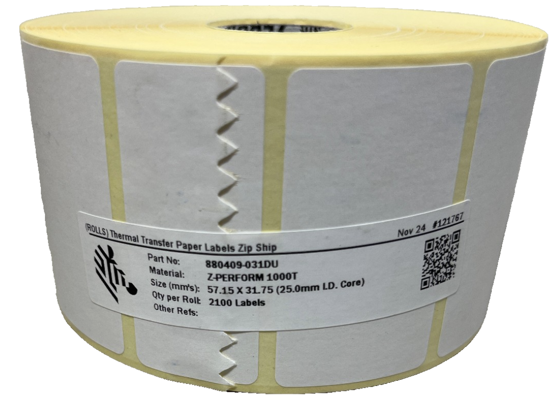 OUT880409-031X1 ZEBRA 880409-031DU Z-PERFORM 1000T 1 ROTOLO da 2.100 ETICHETTE ADESIVE VELLUM 19,00
