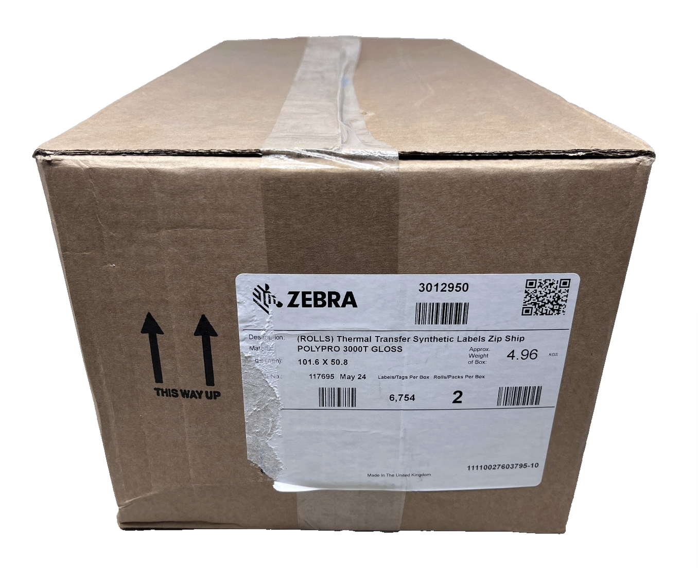 ZEBRA 3012950 POLYPRO 3000T GLOSSM 2 ROTOLI DA 3377 ETICHETTE 102mmX51mm |