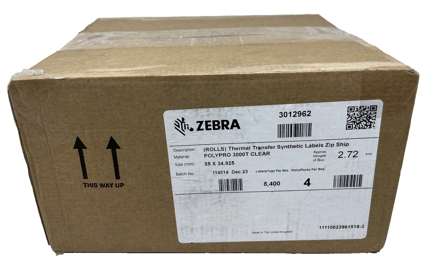 ZEBRA 3012962 POLYPRO 3000T CLEAR 8.400 ETICHETTE 4 ROTOLI 55mmX35mm |