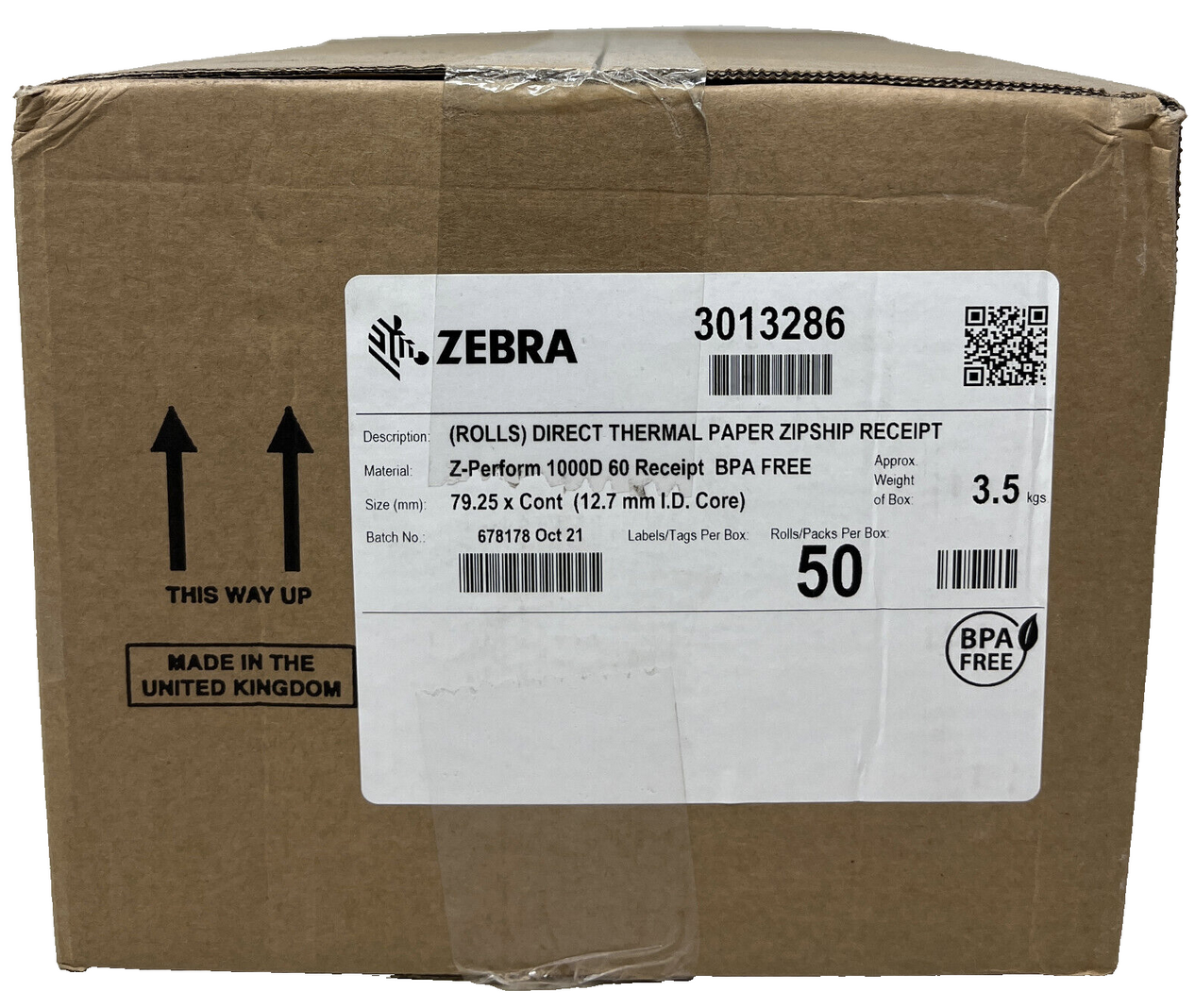 ZEBRA 3013254 8000D ROTOLO CARTA TERMICA 80mm X 10MT ZQ320 / ZQ630 / QLN420 [50 ROTOLI] |