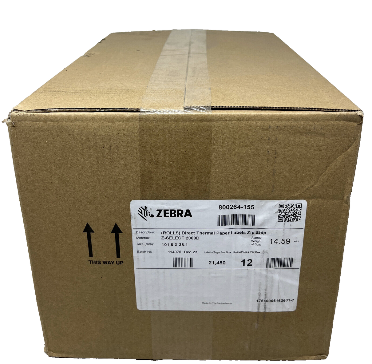 ZEBRA 800264-155 CF. 12 ROTOLI 21.480 ETICHETTE 102mmX38mm Z-SELECT 2000D |