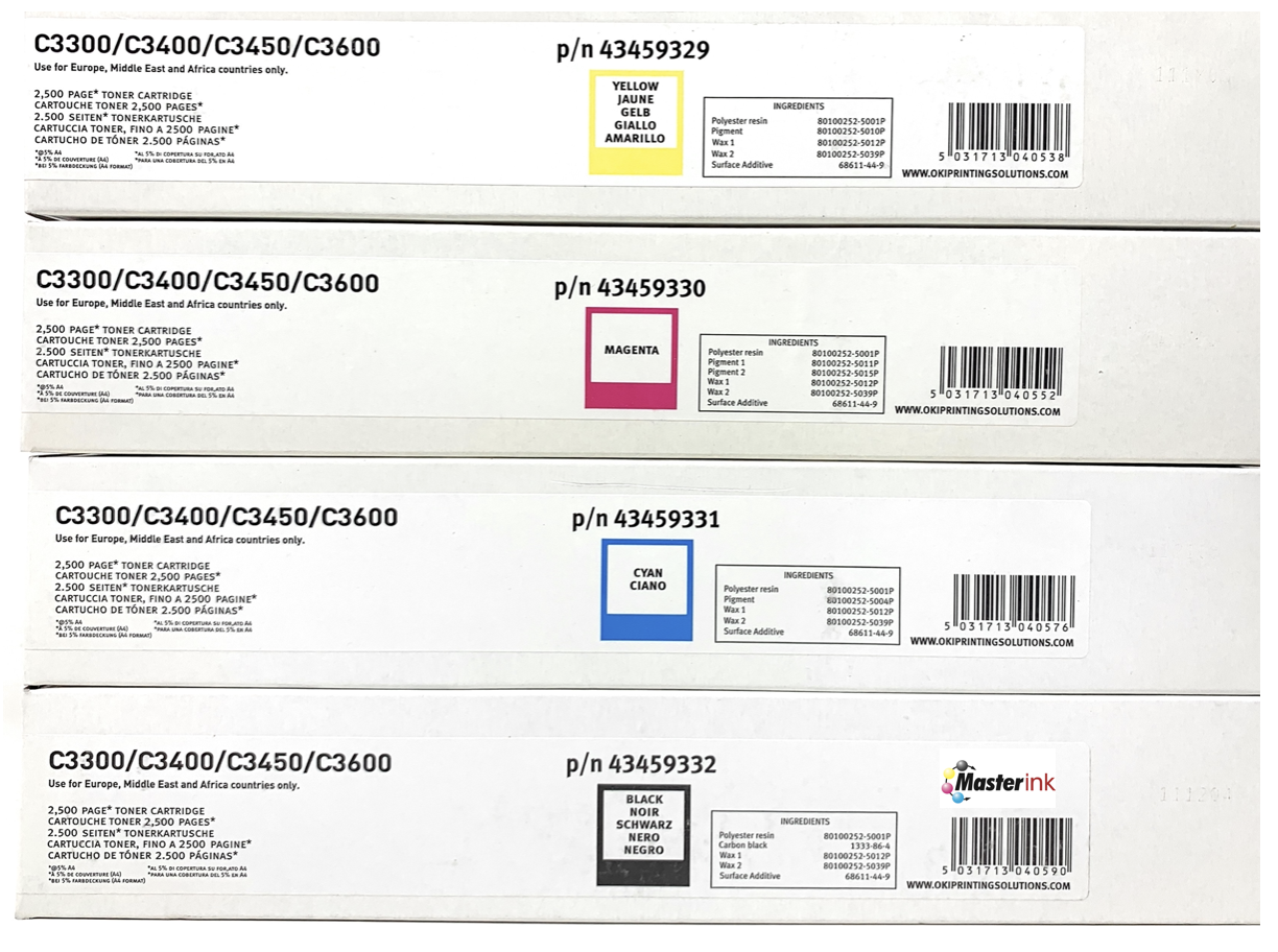 OKI KIT 4 TONER ORIGINALE NERO CIANO MAGENTA GIALLO C3300/C3400/C3450/C3600 |