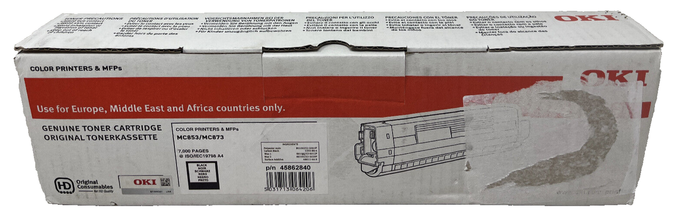OKI 45862840 TONER ORIGINALE NERO PER MC853/MC873 7.000 PG [A BOX] |