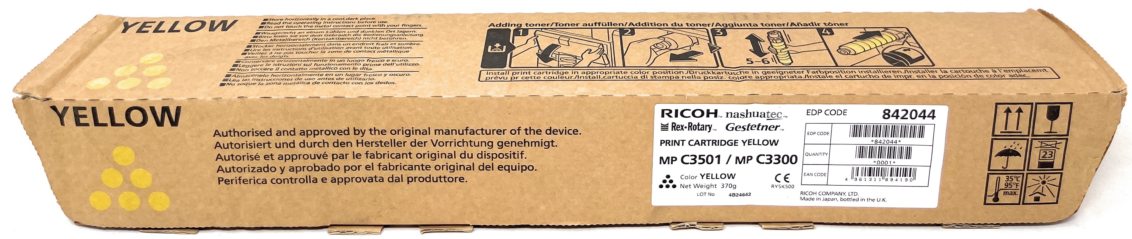 OUT842044 RICOH 842044 TONER ORIGINALE GIALLO AFICIO MP C3501E/MP C3300E [B/C BOX] 89,00