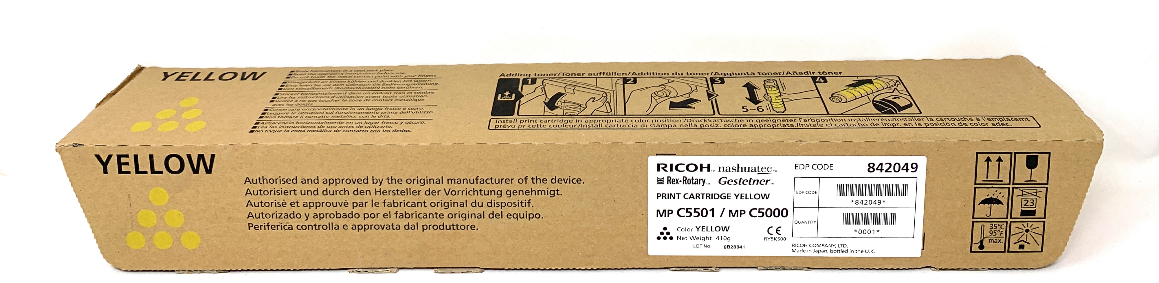 OUT842049CB RICOH 842049 TONER ORIGINALE GIALLO PER RICOH AFICIO MP C5501/MP C4501/MP C5000 [C BOX] 59,00