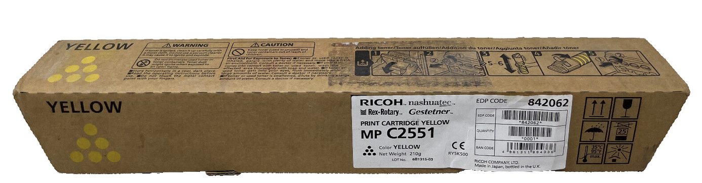 OUT842062 RICOH 842062 TYPE MP C2551 TONER ORIGINALE GIALLO AFICIO MP C2051/MP C2551 (9.500 PG) 89,00